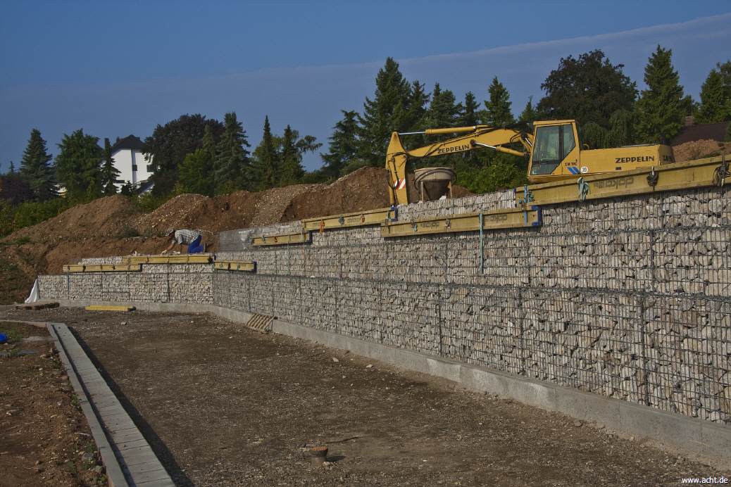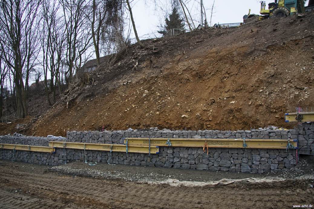 Doka-Träger zur Stabilisierung der Gabionenkörbe bei der Montage.